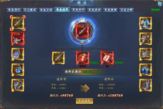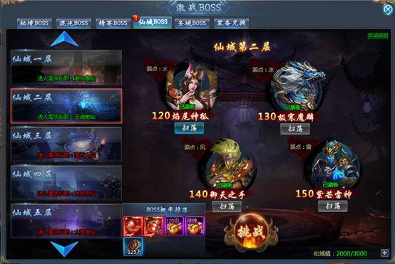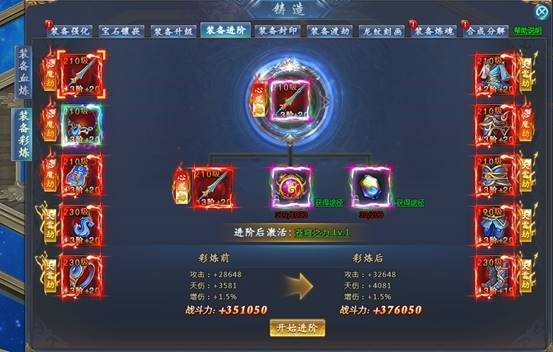 红装达到一定阶数之后还能将每件装备进行彩炼,装备彩炼的材料是在高层数的仙域BOSS中产出。