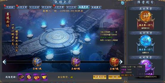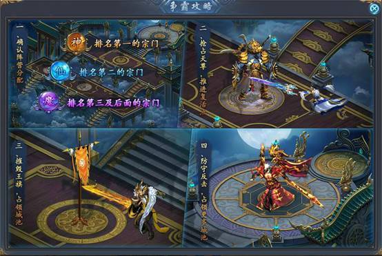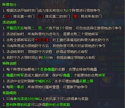 仙域争霸是本服内以宗门为单位的PVP领地争夺活动,主要产出荣誉值,宗门贡献以及随机进阶丹礼包。