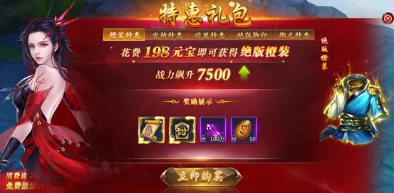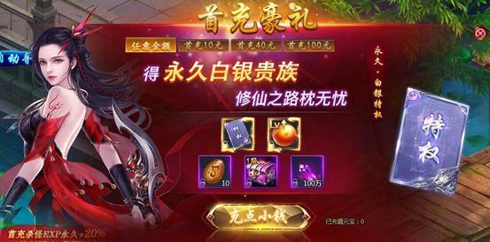 首充是一定要买的!前期送绝版橙武,没有这个之后的武器部位提升也无法进行下去了,首充赠送的白银特权增加各种经验加成,帮助您更快升级。