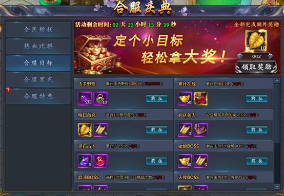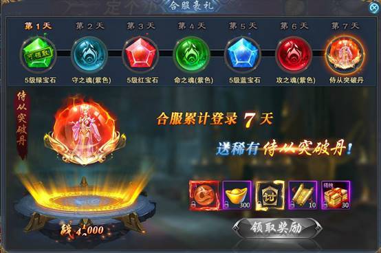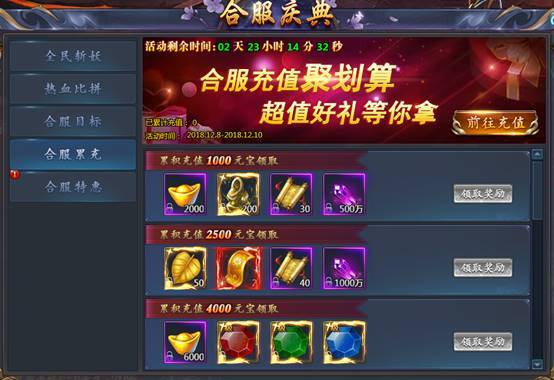 4)合服累充:完成指定额度即可领取超值豪礼,助您战力飙升