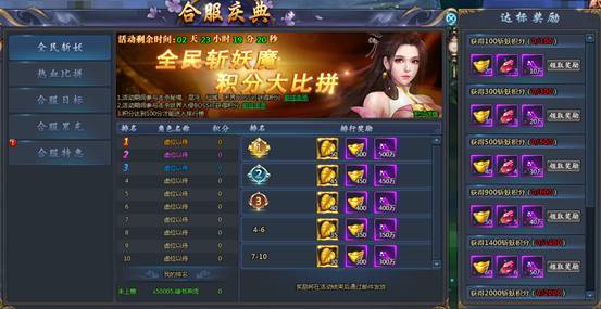 1)全民斩妖活动:全民斩妖,积分大比拼