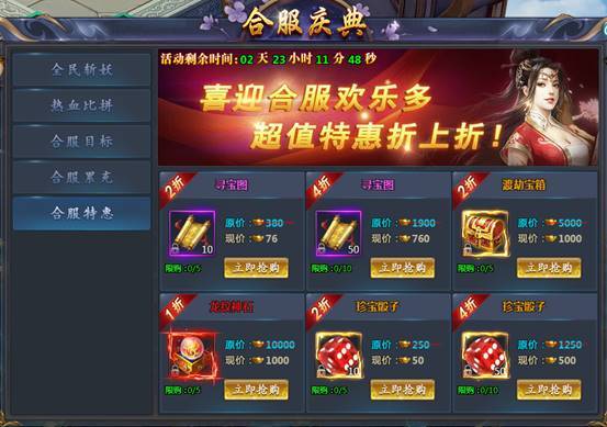 5)合服特惠:合服特惠最低五折实惠道具等你来